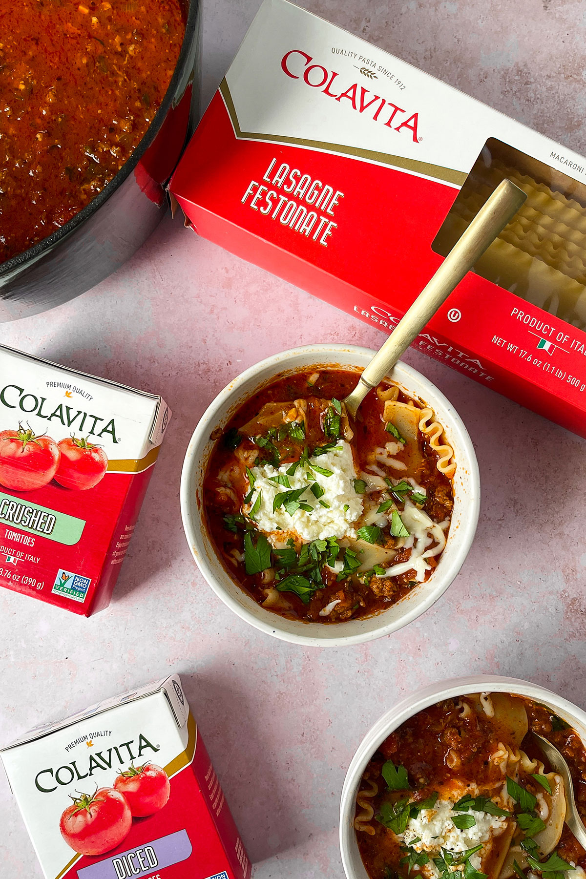 While the soup simmers, cook the broken lasagna noodles for 12-14 minutes, until al dente. Drain, then add the noodles to each bowl you intend to serve.