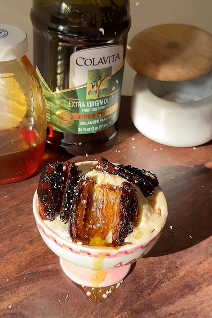 when you’re ready to serve, drizzle medjool dates with evoo, honey & salt and bake for