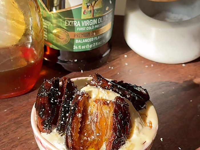 anemptytextllineToasted Date & Sea Salt Honey Ice Cream with Olive Oil Drizzle by @imcurrentlycraving
